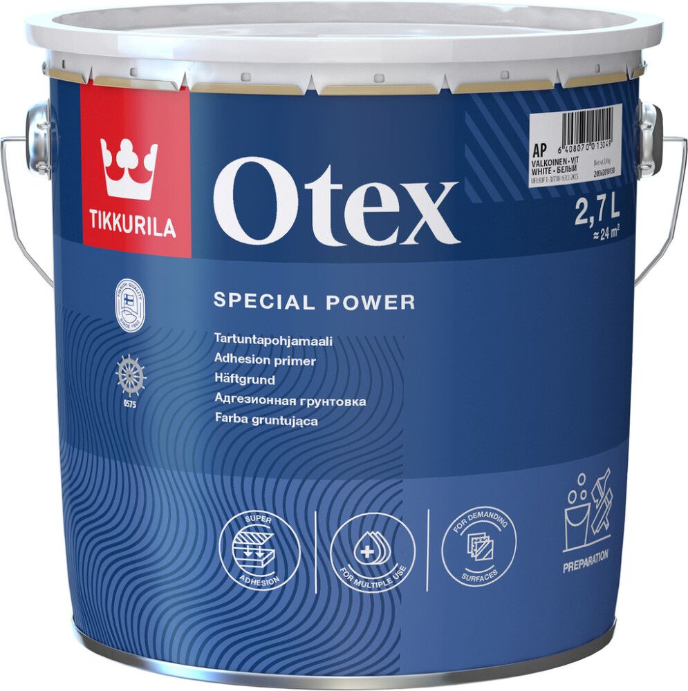 Sobib krunt- ja vahevärvimiseks nii uutele kui ka varem värvitud pindadele. Otex kinnitub hästi ka nõudlikele pindadele nagu näit. klaas-, kahhel-, klaaskiud-, PVC-plast-, alumiinium- ja tsinkplekkpindadele ning alküüd- ja katalüütvärviga värvitud pindadele. Pindadele, kus on vaja suuremat nakkuvust sisetingimustes ning varem polüuretaan- või katalüütvärviga värvitud aknaraamid väljastpoolt. 1 tund – tolmukuiv. Lihvida ja teist korda võib värvida järgmisel päeval.
