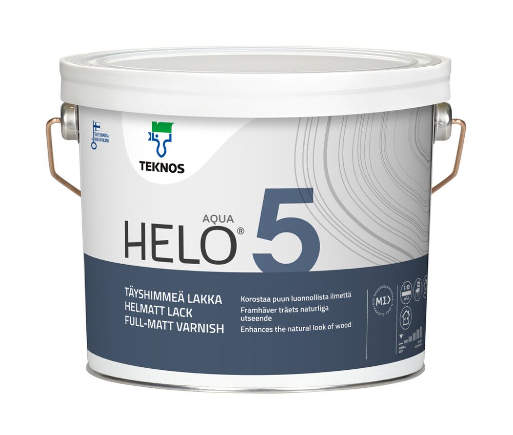 Helo Aqua 5 on veepõhine täismatt polüuretaanlakk, mis toob esile puidu loomuliku ilme. Lakk sisaldab UV-kaitset ja seda saab kasutada nii sise- kui ka välistingimustes. Sobib puidust uste, akende ja mööbli lakkimiseks. Siseruumides saab seda kasutada ka laudpõrandate, treppide, seinte ja lagede töötlemiseks. Värvitut lakki saab toonida poolläbipaistvate värvide värvikaardi toonidesse.