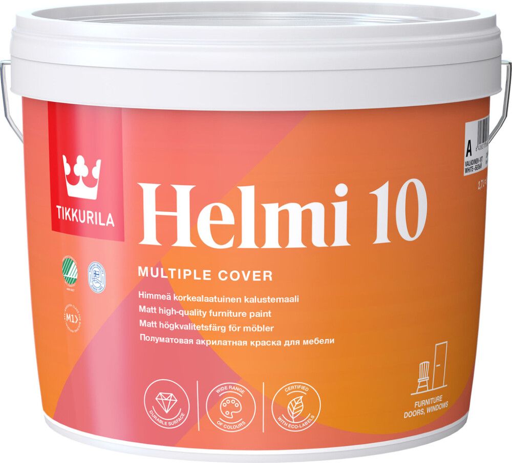 | Tootenimetus | Mööblivärv Tikkurila Helmi 10 A valge 2,7 l |