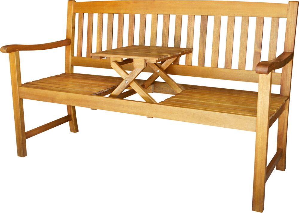 Akaatsiapuidust pink terrassile ja aeda. Pingi laius on 150 cm. Keskel väike kokkupandav lauaplaat näiteks söögi ja joogi jaoks.