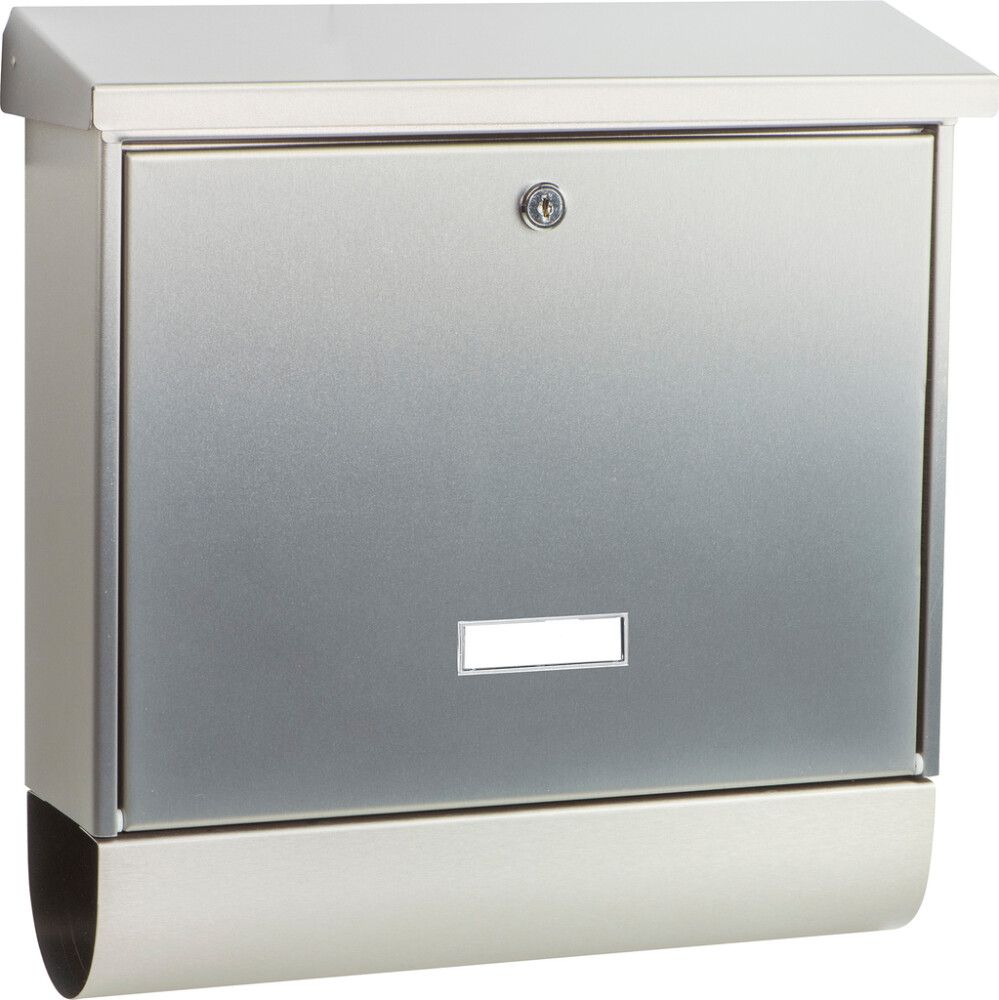 Roostevabast terasest valmistatud ilmastikukindel postkast. Postkastil on plastikust nimeplaat.