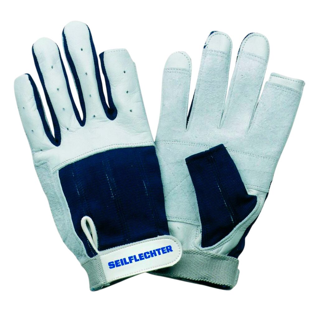 Seilflecht purjetamiskindad pakuvad suurepärast haaret ja kasutusmugavust. Pehme, kuid vastupidav vasikanahk tagab kindla haarde ning käe tagakülg on hingav lateksi-puuvillasegu.