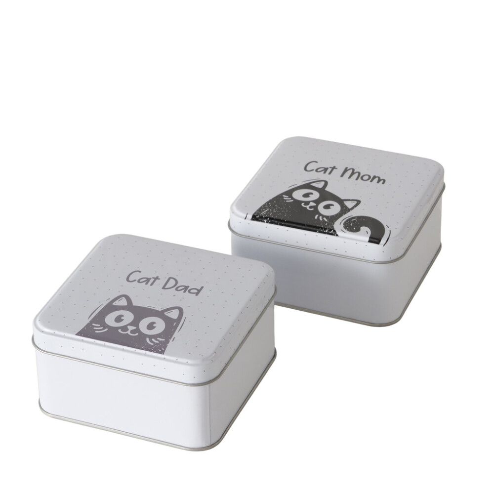 Valge säilituskarp kaanega. Erinevad värvid, kirjaga "Cat Mom" või "Cat Dad".