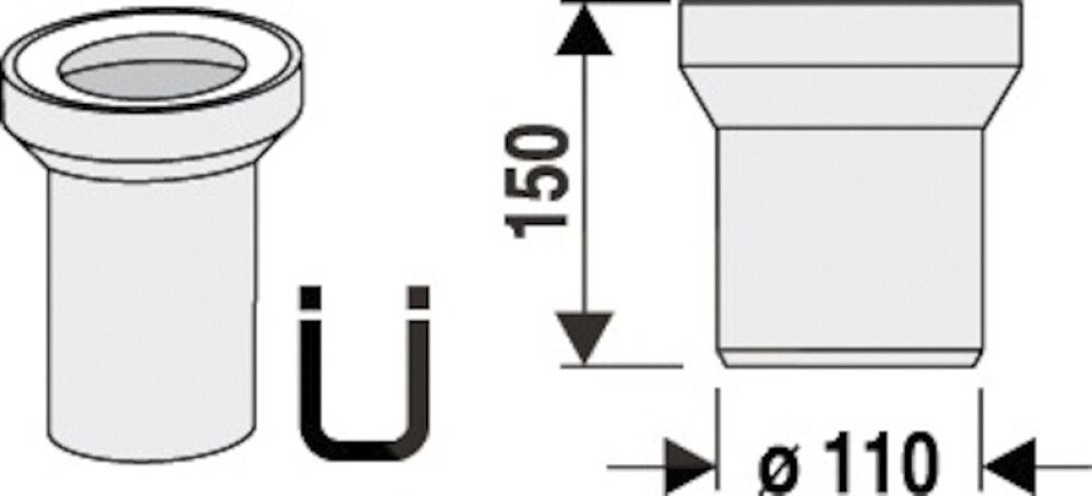 150 mm pikkune ja 110 mm läbimõõduga WC poti ühendustoru.